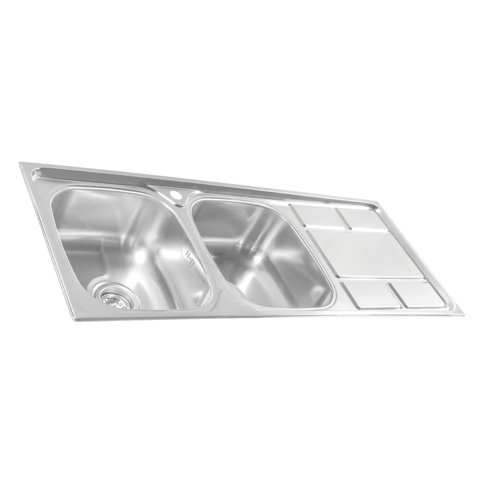 سینکهای درسا علاوه بر طراحی زیبا از دوام و مقاومت بالایی نیز برخوردار هستند ، استفاده از استیل باکیفیت با ضخامت استاندارد باعث شده تا سینکهای درسا دوام بالایی داشته باشند. سینک مدل DS3107 دارای 2لگن بزرگ جهت شستشوی ظروف ، میوه و سبزی و آماده کردن مواد غذایی است.