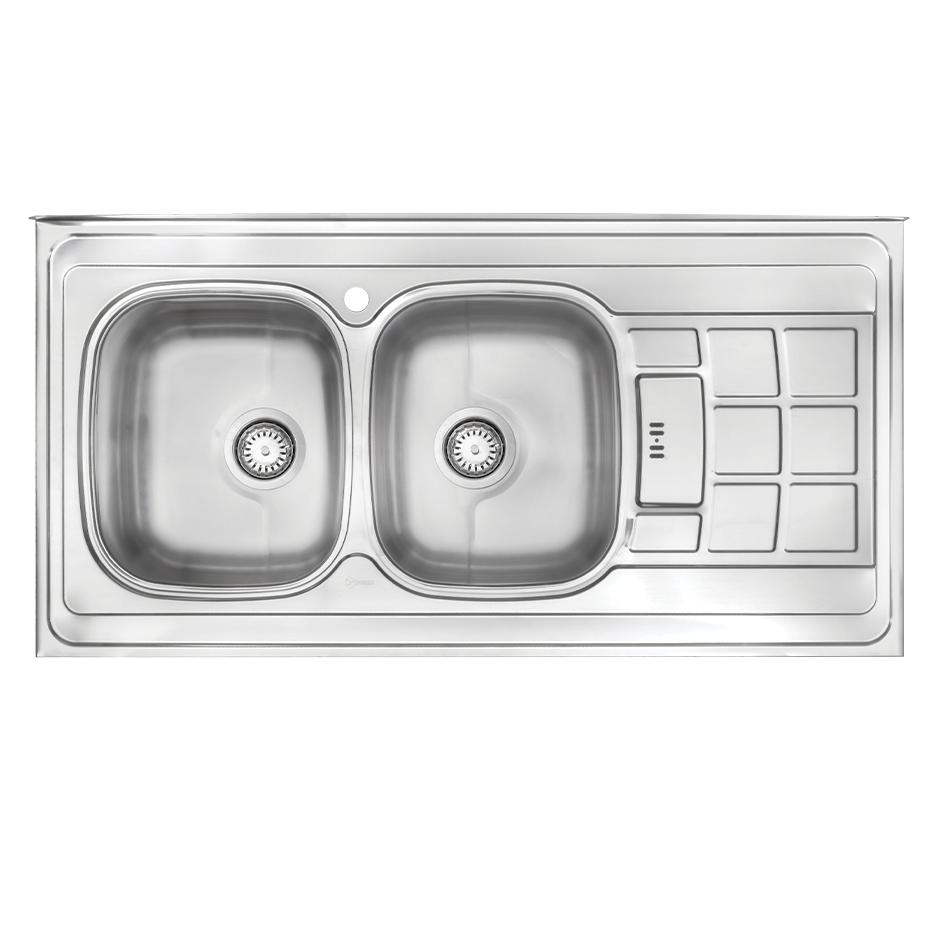سینکهای درسا علاوه بر طراحی زیبا از دوام و مقاومت بالایی نیز برخوردار هستند ، استفاده از استیل باکیفیت با ضخامت استاندارد باعث شده تا سینکهای درسا دوام بالایی داشته باشند. سینک مدل DS3205 دارای 2 لگن بزرگ جهت شستشوی ظروف ، میوه و سبزی و آماده کردن مواد غذایی است.